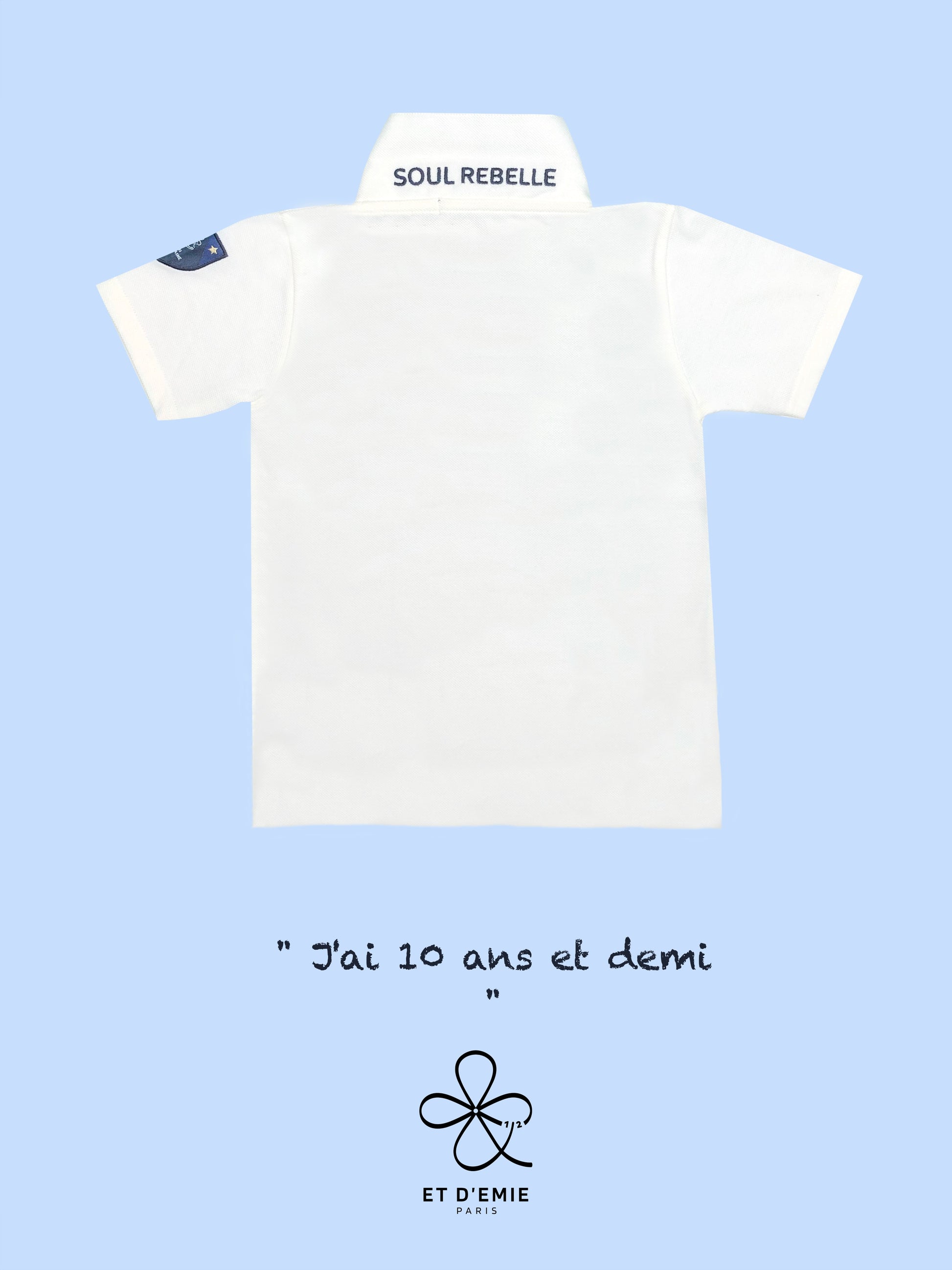 MINI CAPTAIN - SOUL REBELLE polo shirt "I'm 10 and a half years old" embroidered in ivory organic pique cotton🇫🇷