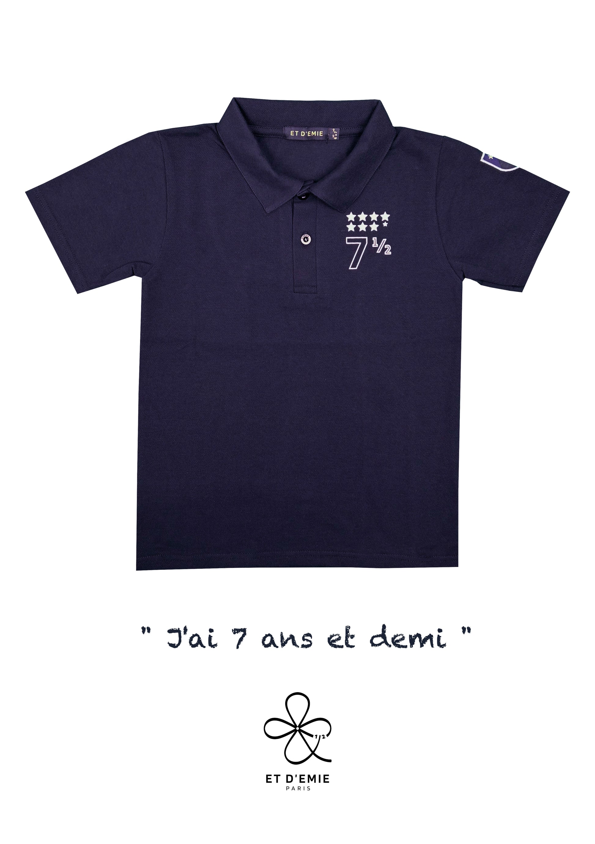 Polo MINI CAPTAIN - SOUL REBELLE "I'm 7 and a half years old" embroidered in navy organic piqué cotton 🇫🇷